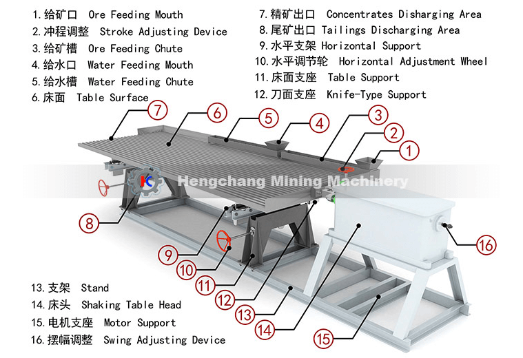 小型選礦搖床是用于選別細粒物料的重力選礦設備,廣泛應用于選別錫、鎢、金銀、鉛、鋅、鉭、鈮、鐵、錳、鈦鐵和煤等。