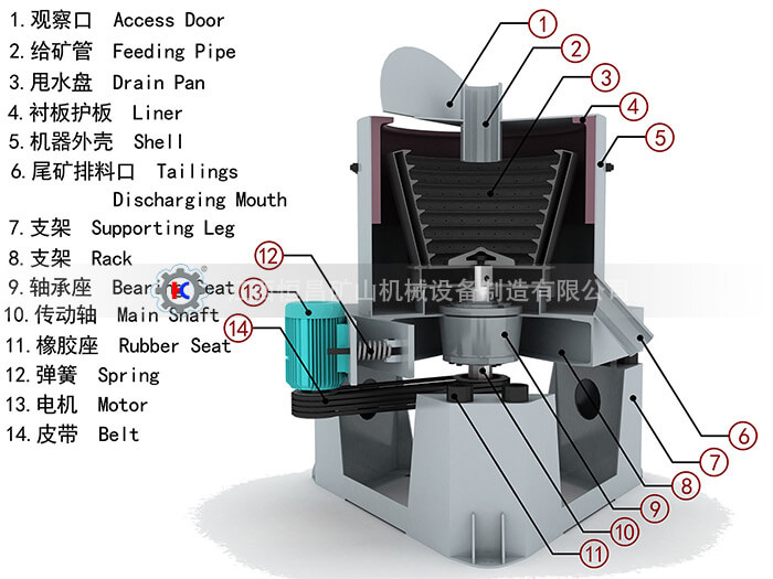 尼爾森選礦離心機(jī)是由給礦管、機(jī)架、尾礦槽、電機(jī)、傳動(dòng)軸承和選礦部件等部分組成。