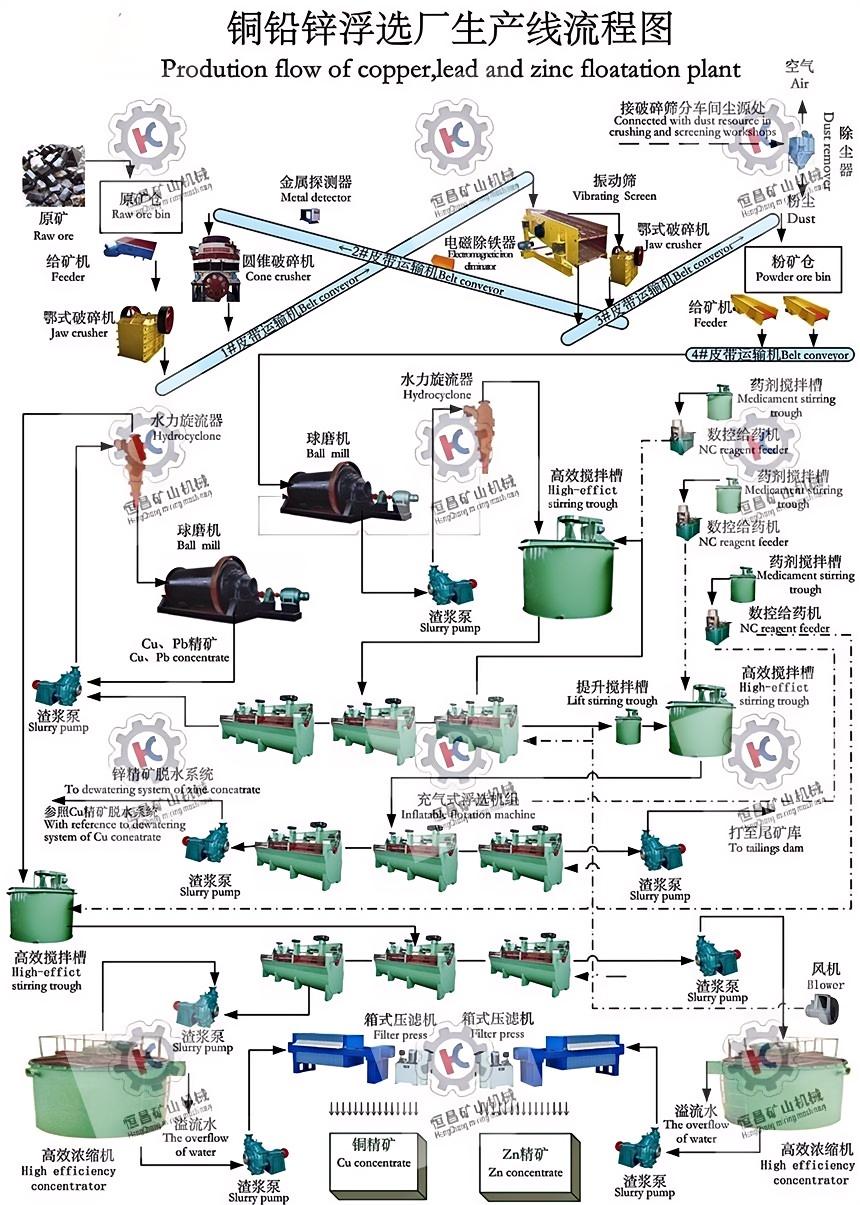 日處理100t/d銅礦選礦工藝設(shè)備流程圖 Copper equipment with the capcity of 100t/d for extraction and technics flow chart