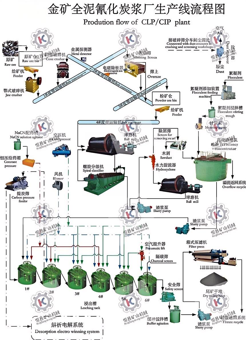 日處理1000t/d噸巖金礦(炭漿)工藝設(shè)備流程圖 Ore gold equipment with the capcity of 1000t/d for extraction and technics flow chart