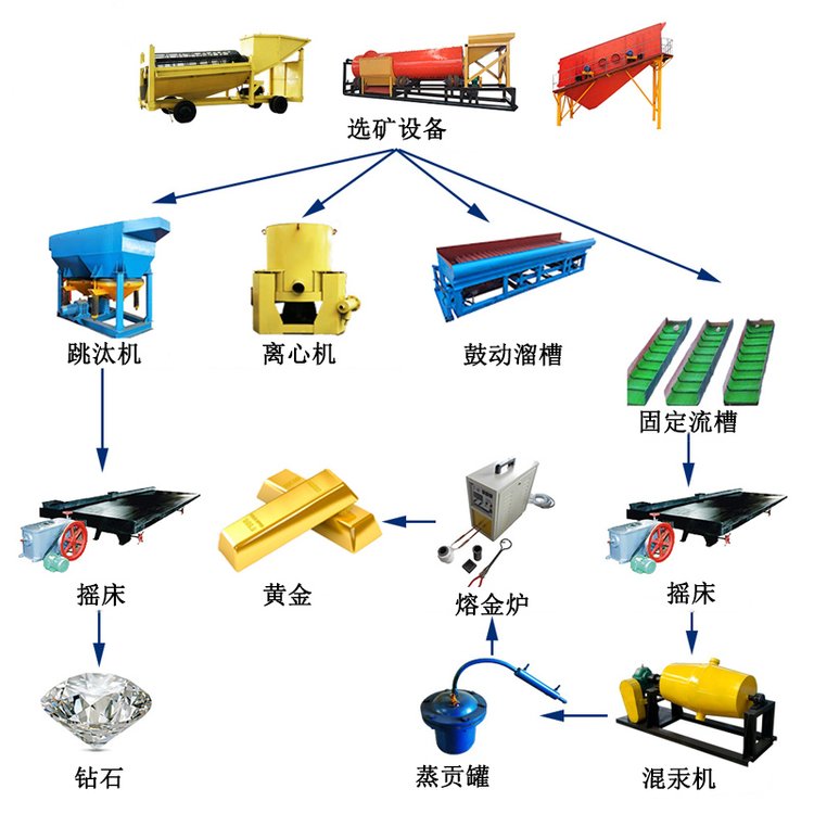 日處理5000 t/d砂金選礦工藝設(shè)備流程圖