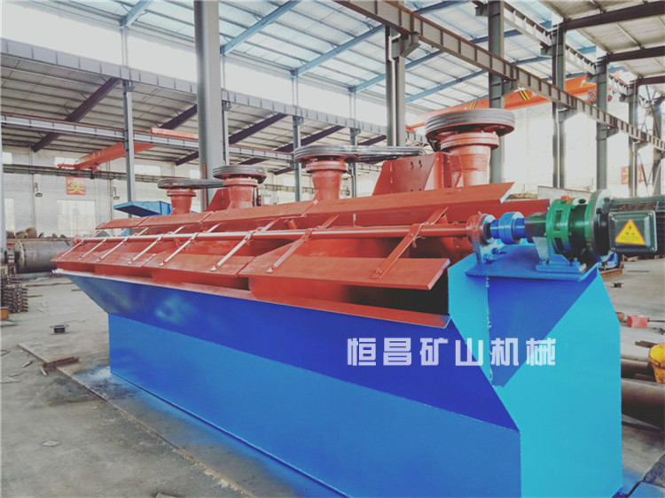 The vanes of BF agitation flotation machine are composed of double truncated cones which can produce strong slurry cycle. Their characteristics are: (1) The suction capacity is large and power dissipation is low. (2) Every tank is equipped with three functions, i.e. air suction, slurry suction and flotation. Flotation circuit is formed automatically and no auxiliary equipment is needed. It is installed horizontally, making it easy for process changes. (3) The circulation of slurry is reasonable and can reduce sedimentation of coarse sand to the largest extent. (4) It is equipped with automatic control device and electric control devices, easy for adjustment.